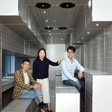 소비가 이루어지는 과정 자체를 하나의 경험으로 디자인했다.” 송호섭 해외 브랜드 관리팀 팀장, 신나정 브랜드 관리팀 팀장, 배재호 공간 디자인팀 팀장. 왼쪽부터 송호섭, 신나정, 배재호. 사진: 김정한(예 스튜디오)